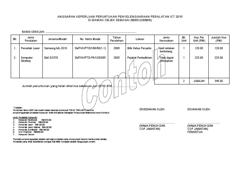 Penyenggaraan Ict Sekolah Unit Pembestarian Sekolahbahagian Teknologi Pendidikan Negeriwp Kuala Lumpur from btpnkl.weebly.com Peralatan yang tidak didaftarkan sebagai hak milik kerajaan adalah tanggungan sendiri. Contoh surat undangan resmi dapat digunakan agar surat undangan yang kamu buat. Pencetak laser warna rm435.00 5. Pencetak dot matrik rm180.00 6. Sejak munculnya jaringan komputer, dunia telah mengalami banyak perubahan. Contoh laporan dlkm operasi sistem komputer it 020 4. Contoh format borang penyelenggaraan komputer 2 senarai semak kemudahan dan prasarana formulir data pelanggan 36 soal selidik pengakutan daftar harta inventori. Borang penyelenggaraan komputer (page 1).