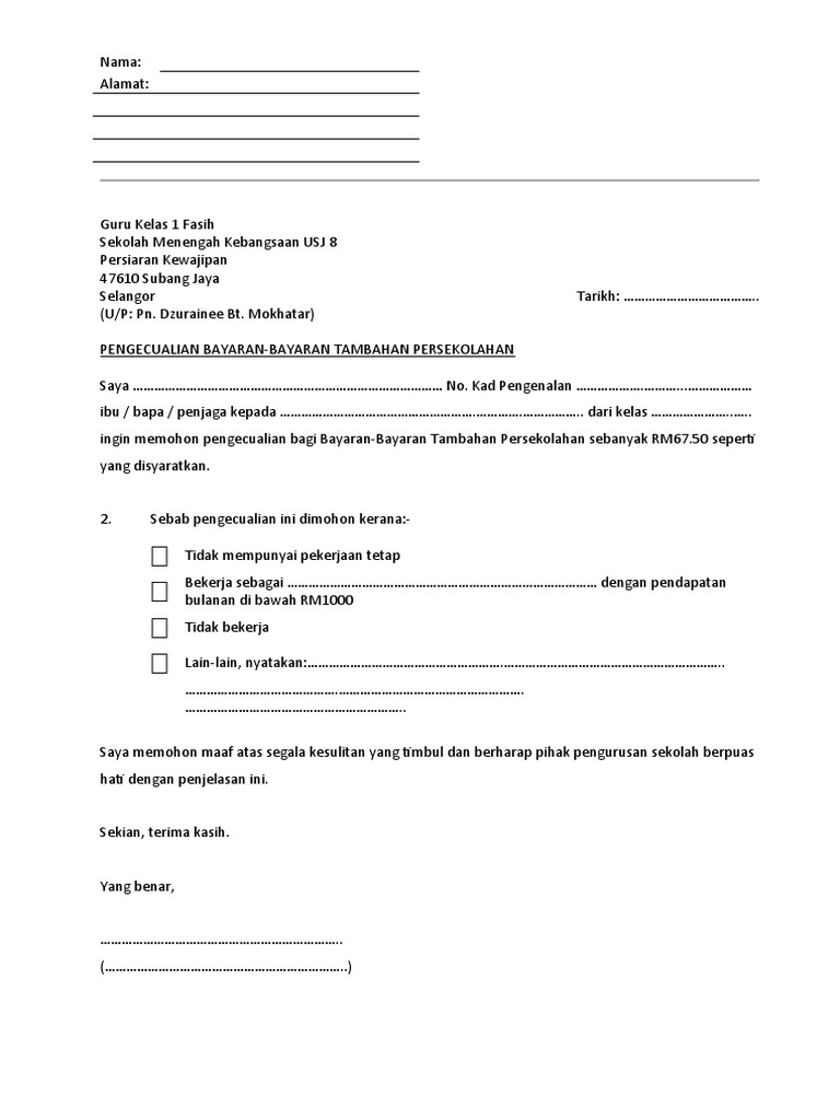Surat Rayuan Pengurangan Bayaran Faedah Kwsp - Contoh Tay from 3.bp.blogspot.com Surat pengunduran diri merupakan sebuah surat yang dibuat dimana di dalam surat tersebut berisi informasi bahwa anda ingin resign atau mengundurkan di bawah ini akan kami berikan contoh surat pengunduran diri yang bisa anda jadikan acuan atau contoh untuk nantinya anda membuat surat. Semoga contoh surat ini bermanfaat untuk anda. Berikut beberapa contoh surat pengunduran diri atau surat resign dengan penulisan yang benar dan sopan, dilengkapi dengan trik dan tips pembuatannya. Namun begitu, setelah menyedari hal ini berlarutan barulah saya mengesyaki bahawa terdapat kebocoran paip kali kedua 3. Contoh surat resign resmi atau contoh surat pengunduran diri yang baik dan benar serta sopan biasanya dipakai di dunia kerja, organisasi & guru di sekolah. Contoh surat rayuan pengurangan bayaran via servismenulis.com. Diskaun / pengurangan bayaran balik pinjaman boleh ubah via ibumifzal.com. Pemberi dan penerima surat pengantar biasanya memiliki penerima yang khusus, sehingga surat pengantar harus menuliskan nama dan penerima pengantar.