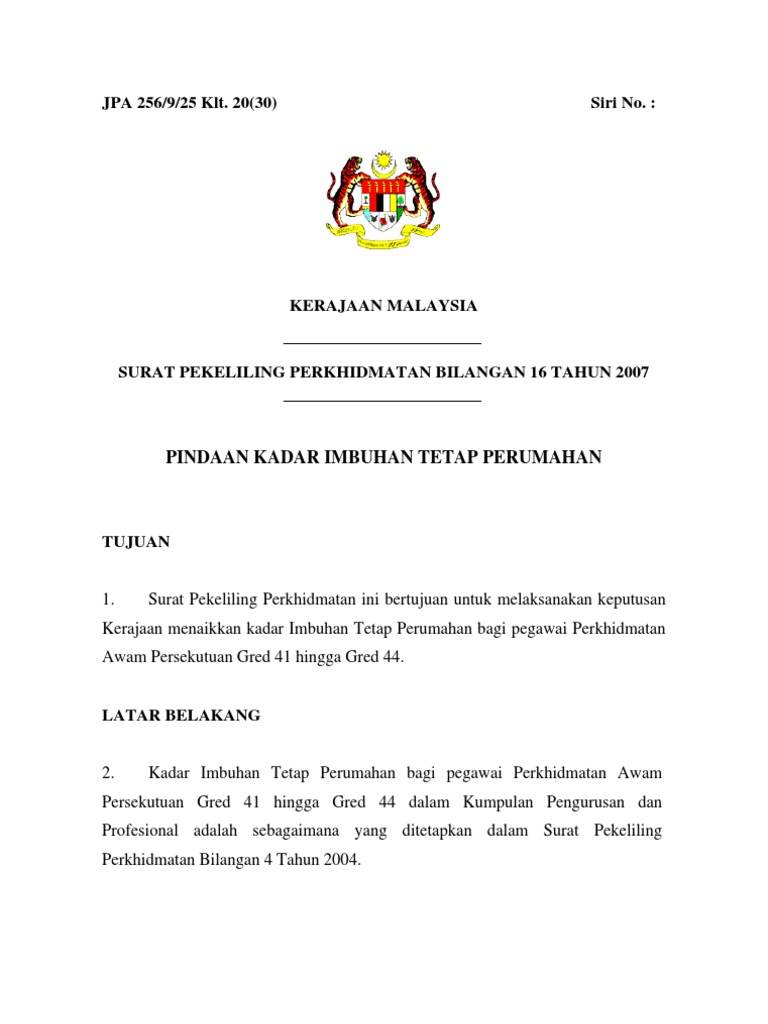 Semua pegawai pengawal hendaklah memastikan setiap kementerian. Imbuhan tetap perumahan bagi perkhidmatan awam persekutuan. Kepada seseorang dibawah umur 18 tahun. Panduan pengurusan pejabat (pekeliling perkhidmatan bil. Pekeliling perkhidmatan bilangan 17 tahun 2007.