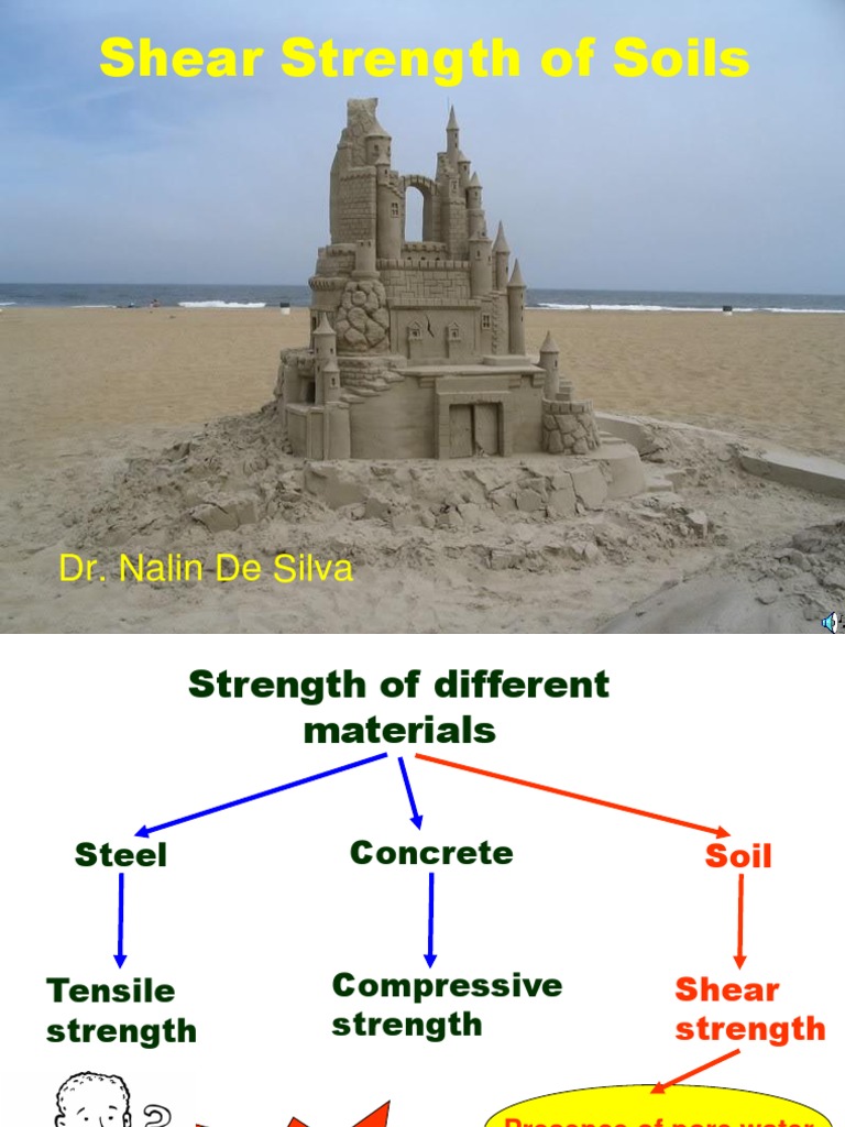 The shear resistance of soil is a result of friction and interlocking of particles, and possibly cementation or bonding at particle contacts. Soils derive their strength from contact between particles capable of transmitting normal as well as shear forces. Test used to find the shear strength of soil. Shear strength is one of the fundamental properties of unsaturated soils. Such programs usually include the use of modern numerical modeling techniques such as finite element analysis coupled with a model for shear strength such as critical state soil mechanics. The limiting shear stress (soil strength) is given by. Shear strength of soil civil engineering (ce) notes | edurev notes for civil engineering (ce) is made by best teachers who have written some of the best books of civil engineering (ce). Shear strength of a soil is indicative of its resistance to erosion. 8.10 mohr theory of strength. Shear strength is a very important property of soils. Yong, r.n., and townsend, ec., eds., american society for testing and materials, philadelphia, pa, pp. The shear strength of soil depends on the effective stress, the drainage conditions, the density of the particles, the rate of strain, and the direction of the strain. Different types of shear tests and drainage conditions.