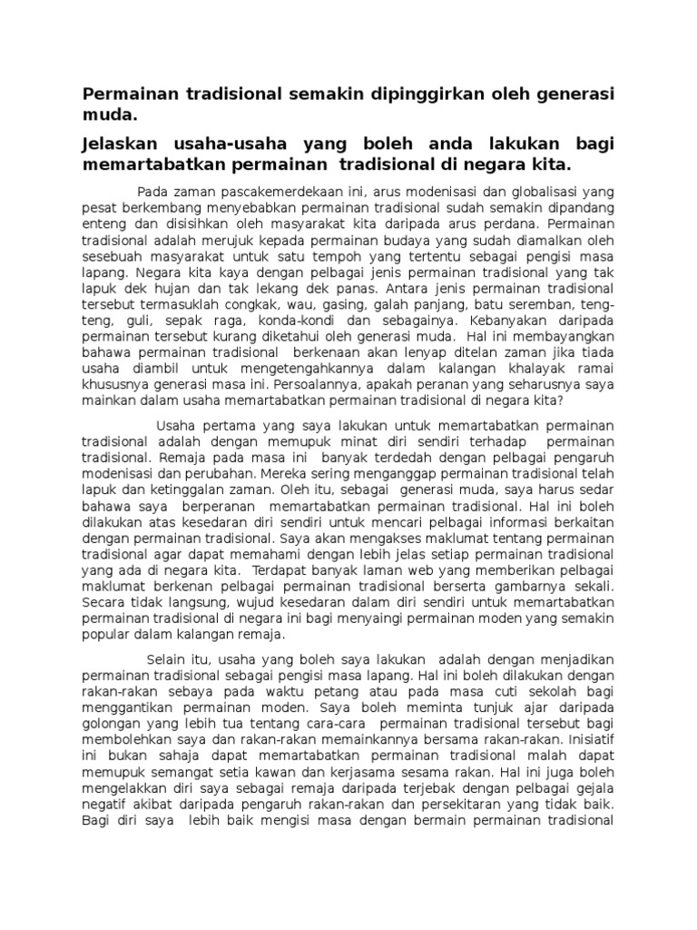 Tegasnya Peranan Ibu Bapa Amat Signifikan Dalam Usaha Untuk Memperkenalkan Course Hero from www.coursehero.com Selain itu, penggiat seni juga wajar melazimi permainan tradisional dalam segala bentuk seni yang mereka ketengahkan. Remaja pada masa ini banyak terdedah dengan pelbagai pengaruh modenisasi dan perubahan. To find out more complete and clear information or images, you can. Era pasca perindustrian dan pasca globalisasi yang serba mencabar akal dan minda kita telah menyebabkan permainan tradisional semakin dilupakan dek ditelan zaman. Contoh karangan sebab sebab permainan tradisional semakin dilupakan roland fantom g6 for kontakt pc torrent rar. See full list on ipendidikan.my Nov 03, 2012 · usaha bagi mengekalkan permainan tradisional adalah peranan sekolah agar mengadakan kegiatan kokurikulum yang berkaitan permainan tradisional. See full list on ipendidikan.my